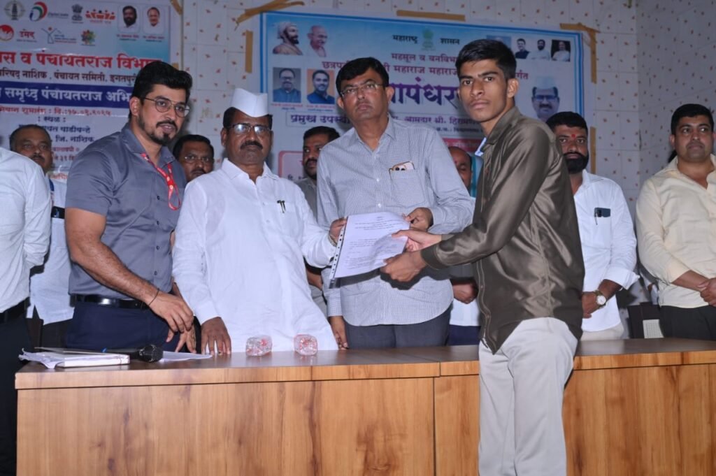मुख्यमंत्री समृद्ध पंचायत राज अभियान मा आमदार श्री. हिरामण खोसकर साहेब यांच्या उपस्थितीत करण्यात आले. तसेच कार्यक्रमास तालुक्याचे तहसीलदार, गटविकास अधिकारी, तालुका कृषी अधिकारी, भूमी अभिलेख अधिकारी उपस्थित होते, मा.आमदार साहेब यांच्या शुभहस्ते ग्रामपंचायत अंतर्गत ५ टक्के दिव्यांग निधी वितरण करण्यात आला. तसेच कृषी विभागांअंतर्गत किसान कार्ड व आरोग्य विभागांअंतर्गत गोल्डन कार्ड, तहसील विभागांअंतर्गत संजय गांधी निराधर लाभार्थी निवड आदेश वितरण करण्यात आले.